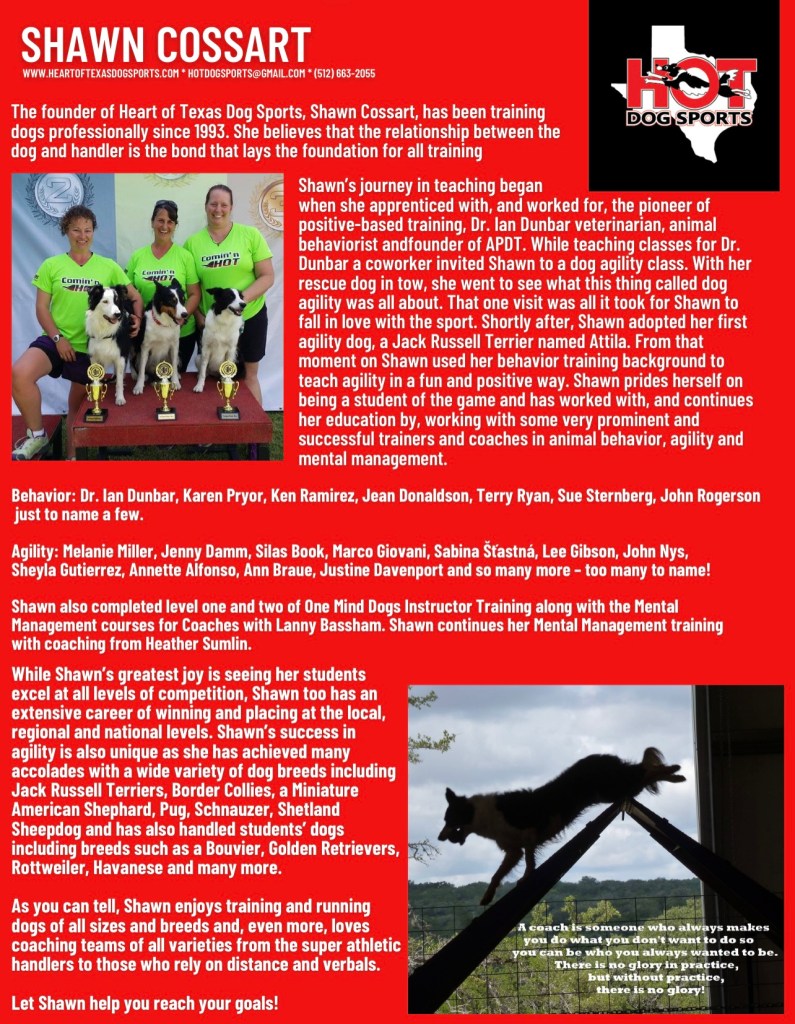 Michelle’s love for dogs started at a very early age and she has had canine companions of various breeds throughout her entire life and she has been competing in agility for 25 years and has been coaching teams for 11 years. She has been training at Happy dog sports for four years. Michelle’s dogs have achieved numerous championships across organizations and sports. Michelle enjoys taking classes, seminars and pursing knowledge in all things dog related including agility training, dog health & nutrition and working with sensitive dogs. Michelle is committed to continuing education and sharing her knowledge with her students. Michell’s primary goals for her handler/dog teams is to have fun and enjoy the journey!